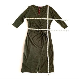Olive green heathered knit wrap sweater dress