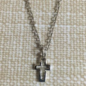 Pretty NWT Cookie Lee Necklace with Cross Pendant. The necklace CHORD is 16.25 inches, which includes the lobster clasp. It has an adjustable 2 inch extender. Made of a SILVER tone metal. It comes with a cute hot pink velvet bag.๐ซ No trades or modeling.๐ซ CROSS pendant is 1/2 an inch, including the first metal loop. 1 FREE GIFT will be given to you! โจ๐โจ