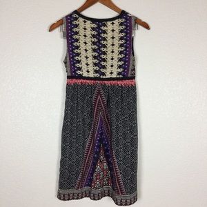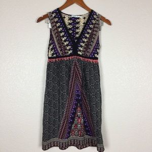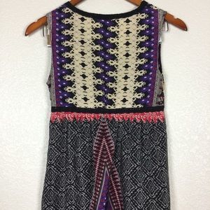 Urban Outfitters Kimchi Blue 100% silk dress. V neck with empire waist, above knee/short dress. embroidered lace detail at neckline and waistline. hidden zipper on side. tribal print/multi colored. boho festival wear. Great used condition. no pilling, stains, or holes noted. Mild wear on black trim. Please see pics for details and condition. Reasonable offers accepted. No 🙅🏻 trades please!