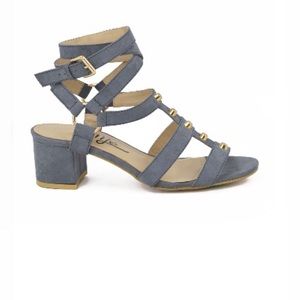 Go ahead and get your rocker babe on with this Grey Suede Studded Leg Wrap Heels! Vegan suede straps are dotted with flat gold studs atop a peep-toe upper. Long straps wrap around leg and secure with an adjustable gold buckle.