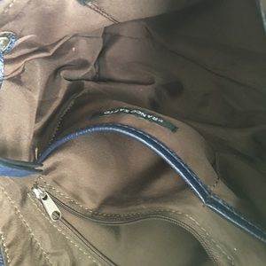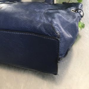 EUC/ Beautiful Deep Navy Blue/ Silver Tone Hardware/ Top Zipper Closure/ Front Exterior Zippered Pocket/ Interior pouch pocket/Four interior pouch pockets/ one zippered pocket/ Clean interior.Price is firm!