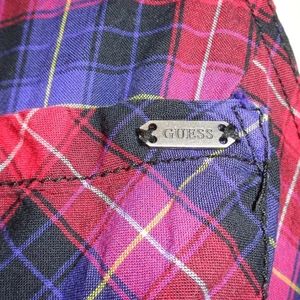 Guess plaid purple & red snap front sleeveless mini dress size 1. This dress is in excellent condition inside and out and has only been worn a couple of times. It is a juniors size 1 which is equal to a size XS. You can even wear it with a long sleeve shirt underneath. The colors are awesome.