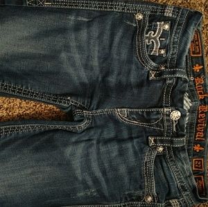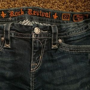Size 27 Rock Revivals. Maggie Boot. 32 inch inseam. Waist measures 15 1/2 inches laying flat. They are stretchy! These are in great condition!! Too tight for me.