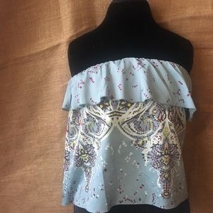 Blue Combo patterned Intimately Free People Flounce tube top. Gorgeous and flowy with ruffle detail. 100% polyester.