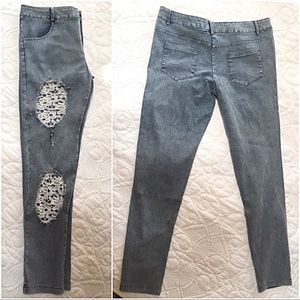 Destroyed Boyfriend Crop Jeans; lace detailed; destroyed denim; boyfriend fit (please examine size chart in order to assure proper fit); lightweight denim has stretch; please examine all pictures prior to purchase. @A3