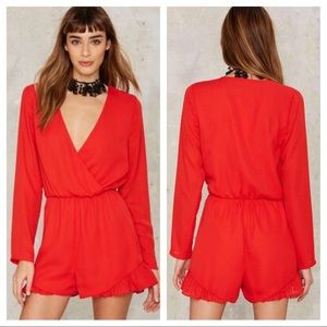 NWT Nasty Gal Size Small Parigi Red Ruffle Romper