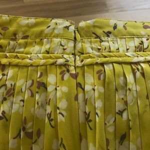 Adorable yellow floral pleated skirt from American Eagle. Has a cute braid detailing toward the waist. It has two layers of material. Zipper in the back with a clip. Never worn. Size 2