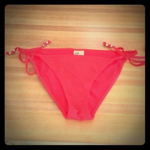 NWOT H&M Size 8 Red Bikini Bottoms that tie on the sides that have 2 decorative gold beads on each string. These bottoms have never been worn.