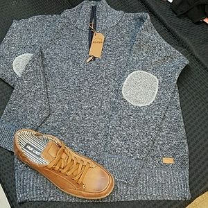 Men Patch Elbow Quarter Zip Sweater Size S