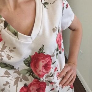 LAST ITEM▫Ivory Soft Terry Floral V-Neck Tee