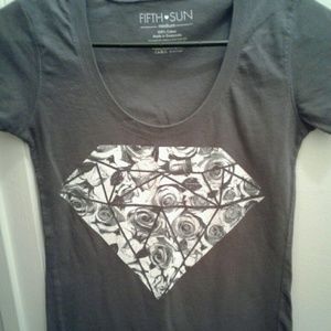 Gray fifth sun top with roses pictured inside the shape of a diamond. Only worn once a few years ago.