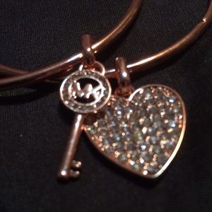 MK Rose Gold Bangle Bracelet Heart & Key Charms