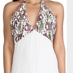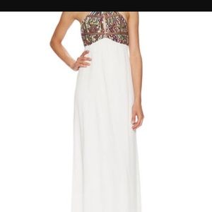 NWOT For Love & Lemons San Pedro Maxi, gorgeous Embroidered top and flowing double layer white gown, all fully lined, adjustable halter tie straps. Elastic at chest and empire waist for a super flattering fit. This was a gift and was Never worn, you can see the plastic and tape from the tag still attached.