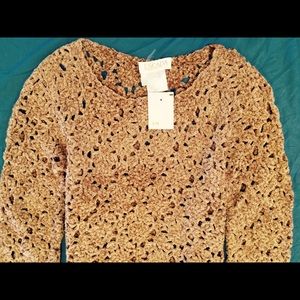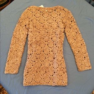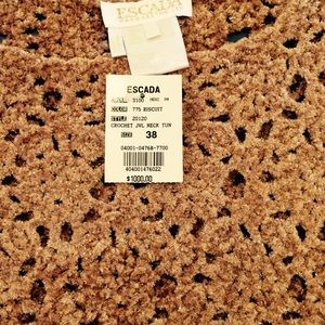 Escada Crocheted Tunic Jewel Neckline Very soft fiber in a golden wheat color. Gold metallic threads are woven throughout that shine more than the pictures can show. Size 38 31.5 shoulder to hem, 20" across shoulders, 20" armpit to armpit, 21" across bottom, 23.5" sleeve ππππππππππππππππ