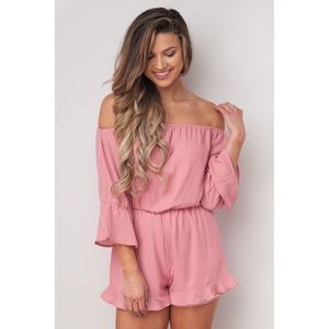 🎉CLEARANCE🎉 Pink Off-Shoulder Bell Sleeve Romper