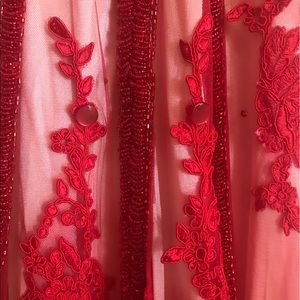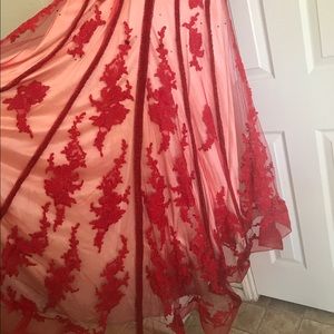 This is one of very few of this style, GUARENTEED no one will have a dress like you! This is a heavy, bead and sequins covered high end gown. Illusion sweetheart neckline, train that is able to attach up to keep from being stepped on. Size 6 but is very forgiving and will fit sizes 4-8. I am 5'8.5 and I wore Louboutin heels that just barely peeked out. Purchased for $1495, grab this gorgeous gown for a steal!