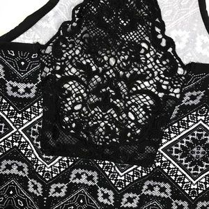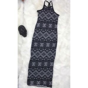 Black and white buttery soft fabric blend . Tight fitted maxi dress . High halter dress . Crochet lace back design . High slit side. Perfect dress with your favorite sandals this summer