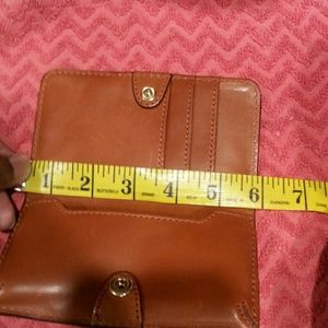 IT'S about 6 and a half long 5 and a half wide I know my Galaxy three can fit in the pocket and that's a big smartphone so and it has a slot for Wii cards and money on the other side