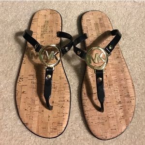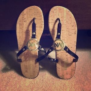 So cute,brand new! Size 8, soft cork padded soles, black rubber top with gold emblem, very comfortable, does rub. Reg $89 make me an offer!