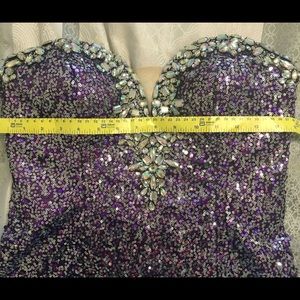 Amazing all sequin dress in a dazzling purple. This dress has a mini train. I think it's a size med/large, but will measure everything for serious inquiries. I'm always open for a good offer. My prices can change daily so grab your favorite items while they last. Please if you are unsure about the size, I will measure and get back to you ASAP. I would like to avoid low ratings because of potential sizing issues, when I will gladly measure for you, Thank you 😊