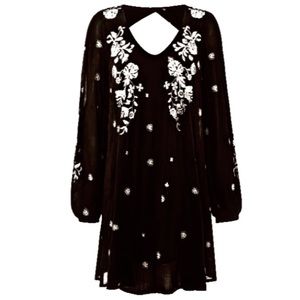 BRAND NEW!! Embroidered floral black and white dress featuring a swingy skirt for an easy fit. V-neckline in front and cute cut-out opening in back. Fully lined. Pls note: this is an austin gal boutique item.🌟Similar style by Free People.🌟
