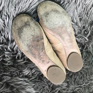 So cute! These were worn but realized I need about a half size up 😔.. seems like they would fit a 7 1/2 more comfortably. A lil dirty on the bottom but otherwise in great condition! Perfect for to brighten up any outfit!! Might be willing to trade for an 8 1/2 Tory Burch flat..