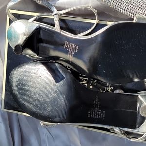 Rhinestone SparklyStrappy Sandal Heels. . Perfect for black tie event or you can wear them around town if you want to add some sparkling fabulous flair to your outfit. Buckle ankle strap. Shoe heel is about 2.5 high.