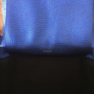 Guaranteed Authentic. Org retail: $1050. In very good condition; comes with dust bag. Metallic blue leather, with clasp closure. Top handle, with adjustable/detachable shoulder straps. Exterior card slot. Expandable through zips. Lined interior, with zip pocket. 12"L, 11"H, 5"W. Faint scratches on the clasp closure. Faint wear on the leather body. Other 3.1 Phillip Lim items available. NO TRADES. Open to offers through the offer button ☺️