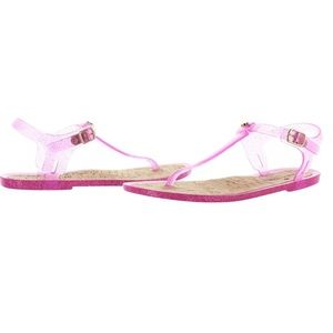 Kate Spade Pink 'Yari' T- Strap Jelly Glitter Sandals Size 6.
