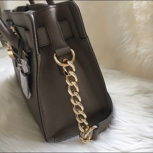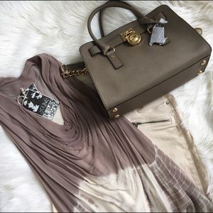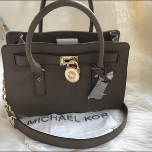 Taupe Saffaroni leather with gold tone hardware satchel by Michael Kors. Measures 12.5 x 9 New! Authentic 🚫trades
