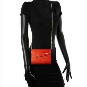 💕Jimmy Choo Candy Glitter Acrylic Convertible Clutch Bag Glittery Plexiglass Hard Shell Rolled Shape Round Golden Chain Shoulder Strap Satin Interior Lining With a Slip Pocket Measurement Body Length 6 3/4 Height 5 Width 2 Drop Handle 21 Jimmy Choo Made in Italy No Trades💕