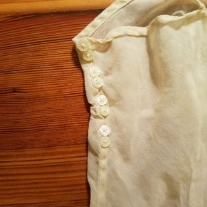 Delicate sheer cotton/silk blend camisole by Abercrombie & Fitch. Has ties on each side and tiny decorative buttons down one side. Color is subtle cream/off-white. Cami is in excellent condition!