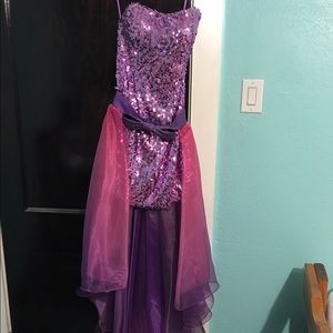 Super cute jovani homecoming dress! High low shirt is detachable to wear sequin dress alone! Size 4 and originally $500! Lmk if you have any questions!