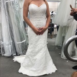 Brand New & Never Worn wedding dress. Strapless- sweet heart neck line - lace trumpet style wedding dress. Pictures posted are a sample dress at the boutique. I have the brand new never worn dress in my closet. Smoke & pet free home. Serious Inquires Only. I am size 6/8 the dress is a size 10 & it fit me perfect. 👰🏻💕 ivory