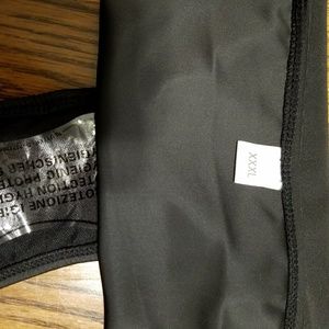2 piece halter style swim suit. Sexy Black with royal blue trim Conservative styling Bathing Suit. Plus Size 3X. Full cut pull on bikini bottom. Bottom measures 18 inches across and 12 long. Top ties at neck. Adjustable tie skirt shown in picture 4.