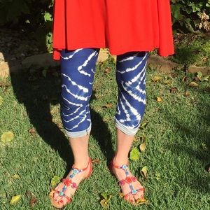 🌼 My new favorite ❤️ tribal tie die leggings are 98% polyester/2% spandex: one size (fits 2-12 comfortably). These will be your favorite "go-to" item in your closet--because they feel like you are wearing soft pajamas! (🌼Find the white tie knot tunic in separate listing in closet--and bundle the two items and get 15% off your order! 💰)