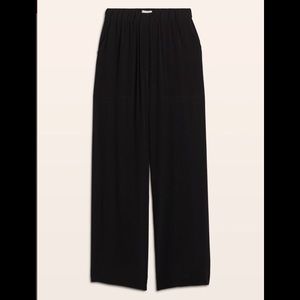ARITZIA Wilfred wide-leg trouser made with a light and comfortable crepe fabric that hangs just right. Has an easy stretch waistband that gives way to a streamlined leg; also has faux-fly front and 2 pockets that create a fine-tailored edge. 53% Viscose, 47% Spun Rayon Crepe.