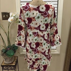 Stunning BOHO burst of summer-Floral Bell sleeve flared dress! So on trend and BOHO chic! Splash into your vacation with wine ivory lime pale yellow and rust orange with crochet accents! Wear with heels, flats or converse!! Boutique-NWT. 100% Rayon. M/L-fits TTS. Length 30". Medium PtP 19" empire waist 17" no stretch. Length 34". Large PtP 20.5". Empire waist 18" no stretch. Length 35". All bottom flares are 30-31" lying flat at bottom.