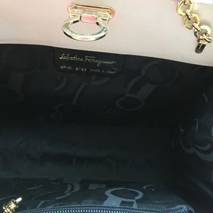 Absolutely GORGEOUS 100% AUTHENTIC NEW Salvatore FERRAGAMO Cream Leather Purse with gold chain strap and Classic Ferragamo Logo Closure. Inside is a large zipper pocket. This bag is the EPITOME of Class and sophistication and ALWAYS WILL BE!! ππππ»πππ»