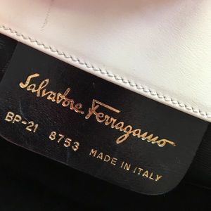 NWOT Salvatore Ferragamo LogoCreamW GoldStrp Purse