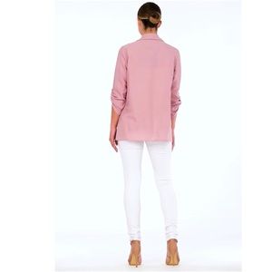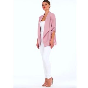 Perfect shade of pink, light weight that can compliment any outfit! Whether you want to wear a girly camisole, solid tank with some distressed jeans, throw this over to complete the look! This lightweight blazer also features a button roll-up sleeve. Perfect for all white sneakers or a pair of girly heels! Must-have in any wardrobe, mum & I kept one!!