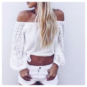 ๐H.P ๐ ๐FINAL๐White Off Shoulder LS Crop Top