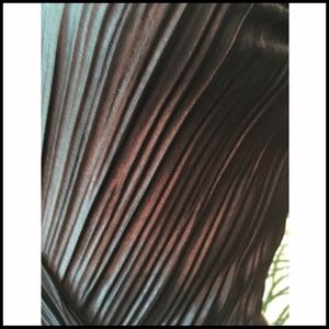 Cross-over Body Suit; shimmering poly ribbed fabric; can be dressed up for going out or dressed down for a casual look; snaps at gusset; has stretch.