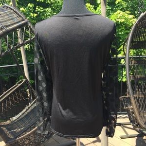 5⭐️rated‼️silky smooth top with polka dot netted sleeves‼️please read All descriptions, ask questions‼️Lots of stretch M36-40 can fit a large!