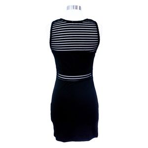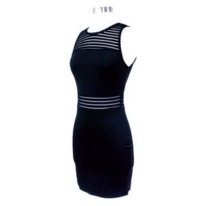Black Sleeveless Mesh Stripes Bodycon Dress