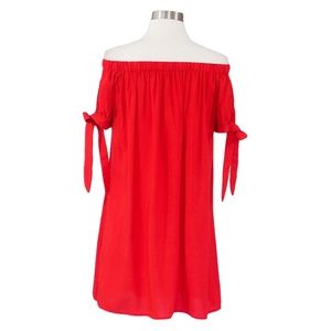 ❗️LAST ONE ❗️Red Off the Shoulder Bow Shift Dress
