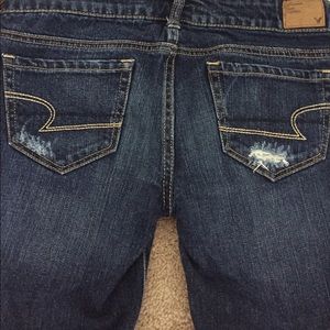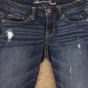 American Eagle lightly distressed dark wash size 2 denim shorts. Worn only a few times. Can roll the cuffs down or leave them cuffed.