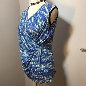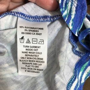 New with tags. No damages, stains, or wearing. Looks like a wrap but does not actually open up. 95% rayon, 5% spandex. Measurements in picture.