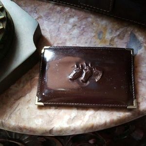 It's a very unique purse. Has it's history too. A sooo hard to find another alike. Love the horse detail it has on the front, In gold metal. And it's real patten leather as well. I also put a card holder and that u can see in last pic. It's also very classy the color is like a brown/Mahogany. just so chic!! It has also an inner zipper compartment. And you can see as well, their designs are horses, even the very old ones.
