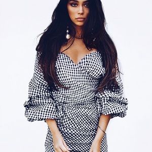 π Mia Black & White Gingham Wrap Dress